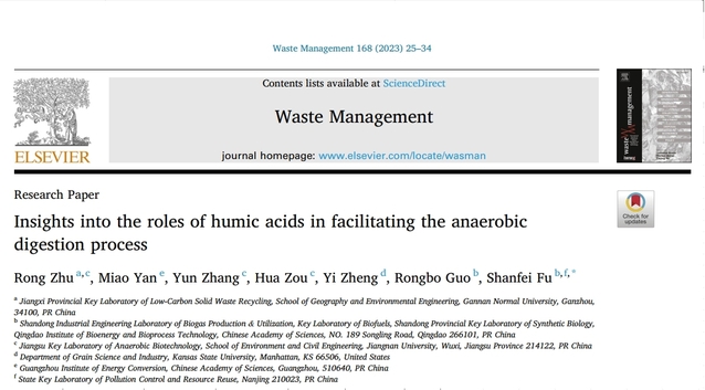 近日,学院朱荣博士与中科院、江南大学以及美国堪萨斯州立大学等多位教授合作的最新研究论文《Insights into the roles of humic acids in facilitating the anaerobic digestion process》在环境科学与生态学国际权威学术期刊(中科院1区Top,IF=8.1)《Waste Management》刊发,朱荣为第一作者,我校为第一完成单位。